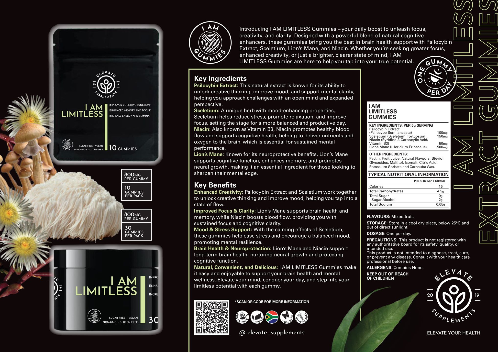 Introducing I AM LIMITLESS Gummies – your daily boost to unleash focus, creativity, and clarity. Designed with a powerful blend of natural cognitive enhancers, these gummies bring you the best in brain health support with Psilocybin Extract, Sceletium, Lion’s Mane, and Niacin. Whether you’re seeking greater focus, enhanced creativity, or just a brighter, clearer state of mind, I AM LIMITLESS Gummies are here to help you tap into your true potential.